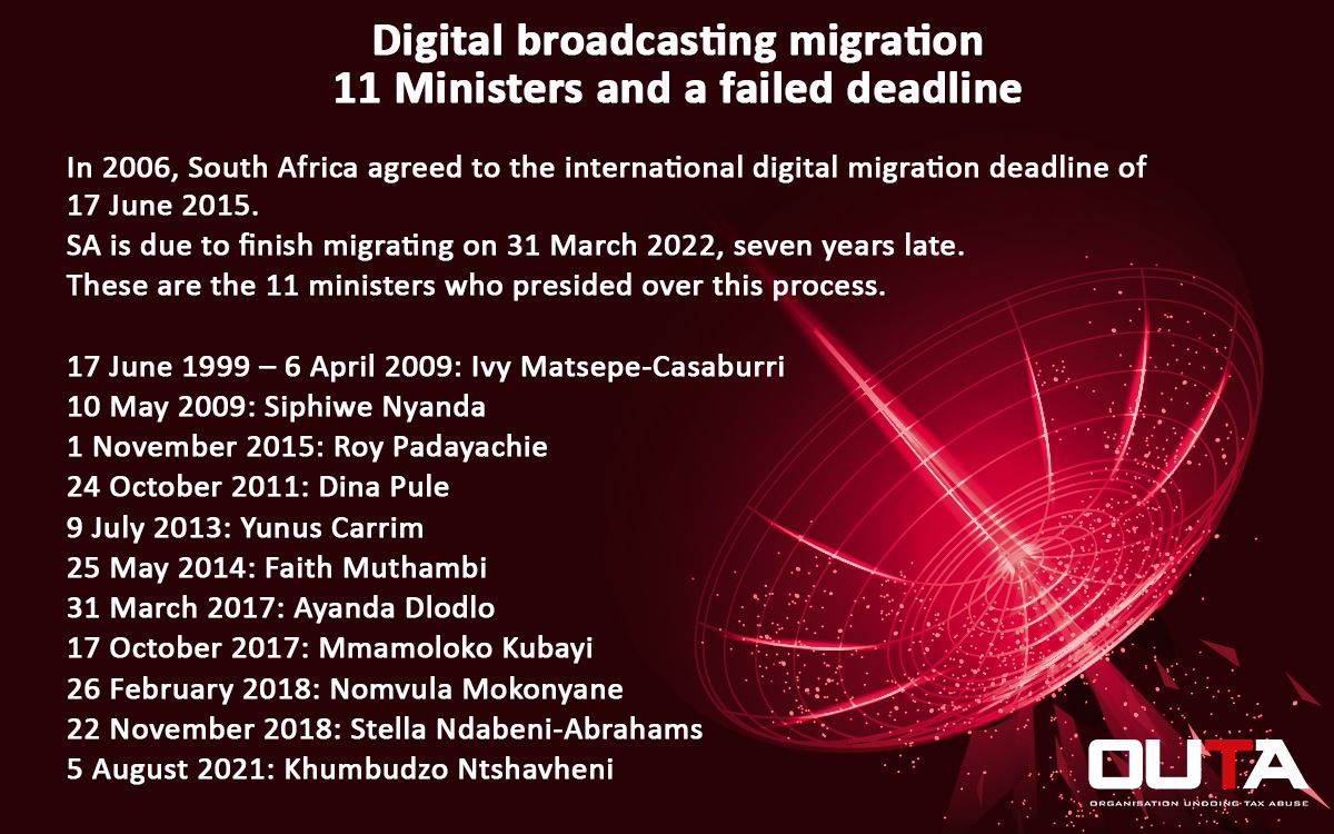 More than 10 years after the Cabinet first promised to complete digital migration, the final national switch-off of the analogue signal is set for 31 March 2022. This is a deadline that President Cyril Ramaphosa announced in his State of the Nation Address in February 2021 and again in February this year.