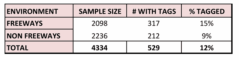 “Based on a statistically sound sample size, OUTA’s research shows that only 15% of freeway users are tagged and 9% of vehicles counted off the freeway were tagged. Obviously, it is the freeway-user count that matters in this exercise, but the off-freeway count helps to corroborate our findings,” says Wayne Duvenage, the chairperson of the Opposition to Urban Tolling Alliance (OUTA). One would expect non-freeway tag rate to be lower as there will be around 33% of vehicles in Gauteng that do not touch the freeways.